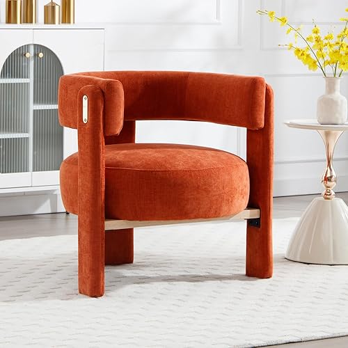 Ya-Home Fauteuil de Salon à Coussin Epais et Accoudoirs Fauteuil pour Chambre en Bois Fauteuil pour Salon Moderne et Confortable, Orange