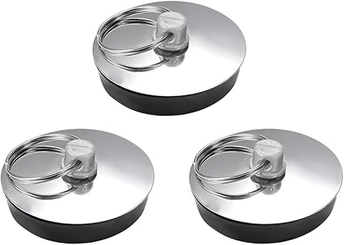 DealMux Lot de 3 bouchons d'évier en caoutchouc avec anneau, 35 mm, durables, faciles à nettoyer, pour baignoire, cuisine, salle de bain