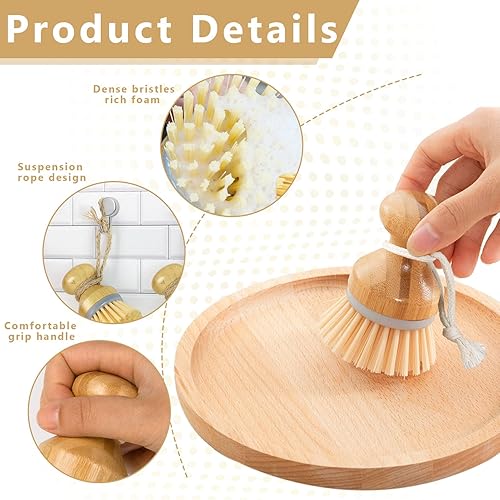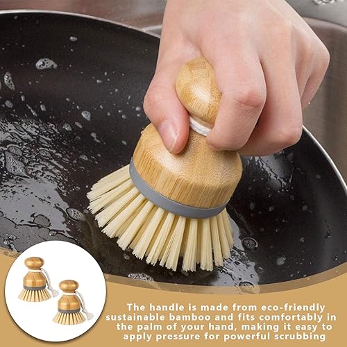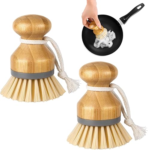 Lot de 2 brosses à vaisselle en bois, sûres, respectueuses de l'environnement et durables, adaptées pour les légumes, les champignons, la vaisselle, les brosses de cuisine.
