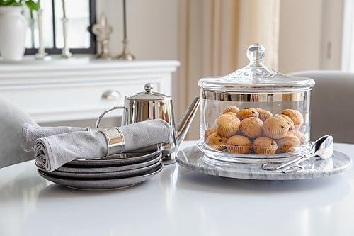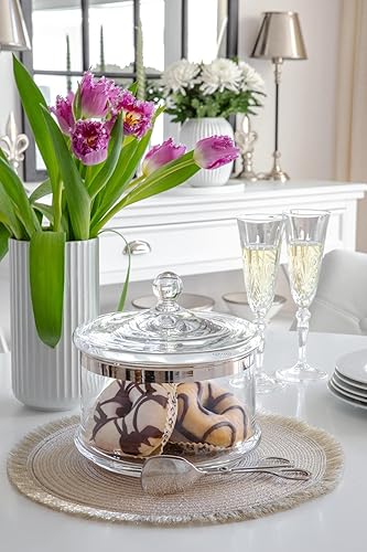 EDZARD Bol en verre boîte de service Vigo avec couvercle, verre en cristal soufflé à la bouche avec bord en platine, diamètre 19 cm, hauteur 19 cm