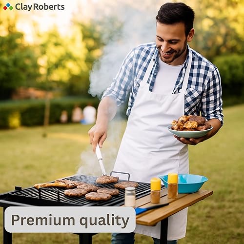 Clay Roberts Tablier de Cuisine, Bleu, Tablier Femme/Tablier Homme, 2 Poches Frontales, Lavable à la Machine, Adapté aux Usages Domestiques et Professionels