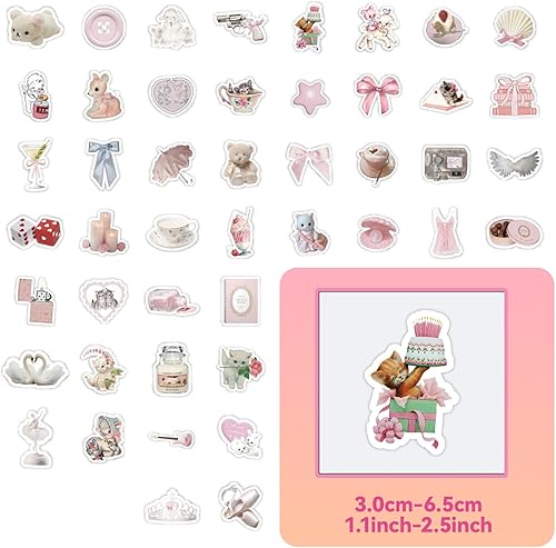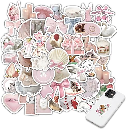 AzureRay Lot de 120 autocollants Y2K, Autocollants esthétiques avec nœud rose, Stickers Cute en Vinyle pour bouteille d'eau, Ordinateur portable