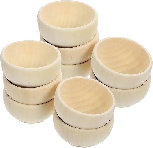 MAGICLULU 10 Pièces Petit Bol En Bois Bols En Bois Inachevé Petits Bols Matériel D'Artisanat En Bois Fournitures De Bricolage Artisanat Bols En Bois Mini Couverts En Bois Jouets En Bois