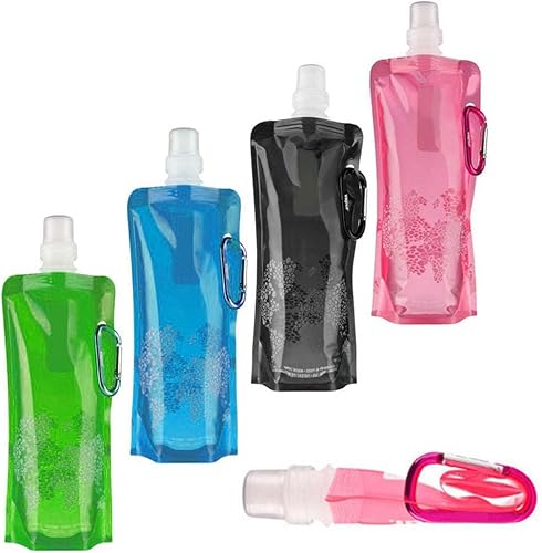 UEAVOID 4 pièces Bouteille d'Eau Pliable Faltbare Réutilisable avec Capuchon Vissé Pour Le Vélo De Sports De Plein Air La Randonnée Les Aventures Les Voyages (500ML)