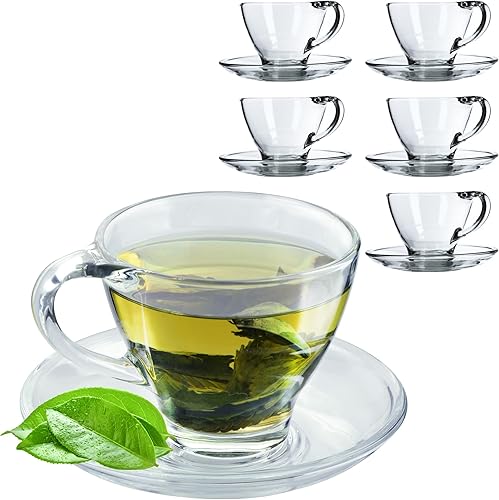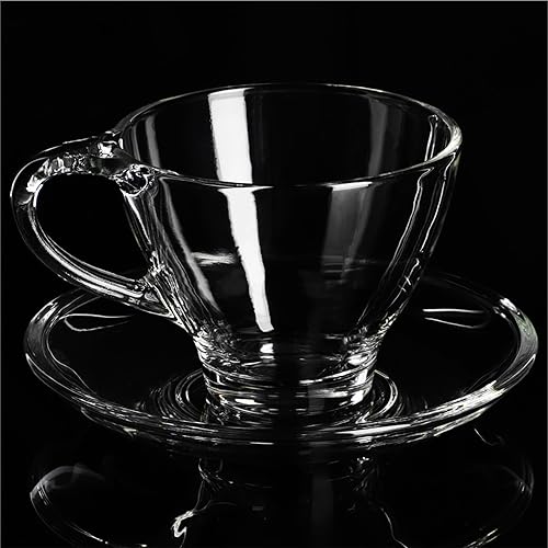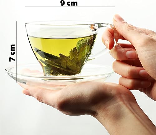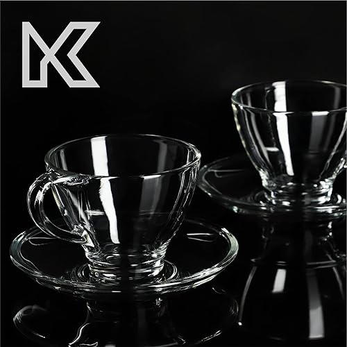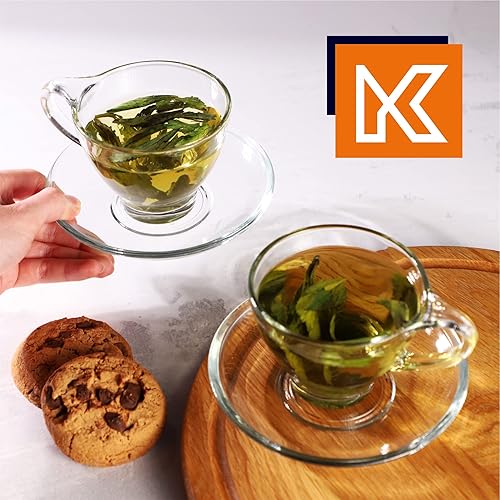 KADAX Lot de 6 Tasses en Verre Transparent Avec Soucoupe - 200 ml/250 ml - Pour Thé et Café (Hannah / 6 Pièces)