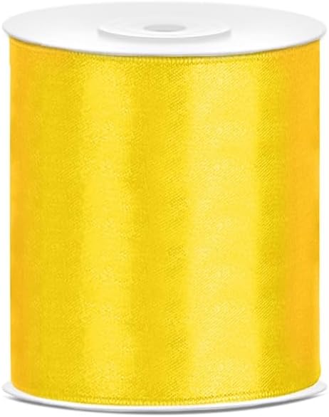 Ruban de satin de 10 cm de large - Ruban à découper, au mètre, cérémonie, mariage, anniversaire, fête, décoration, nœuds de chaise (jaune, 3 m)