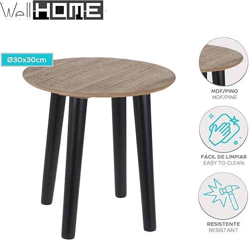 WELL HOME MOBILIARIO & DECORACIÓN Well Home Table Basse en MDF Couleur Marron Ø30 cm, 30x30x30 cm