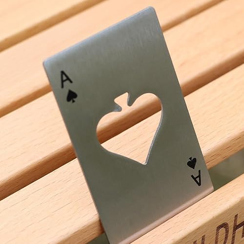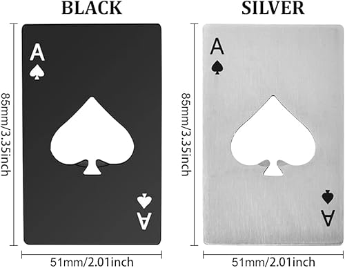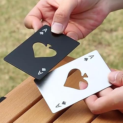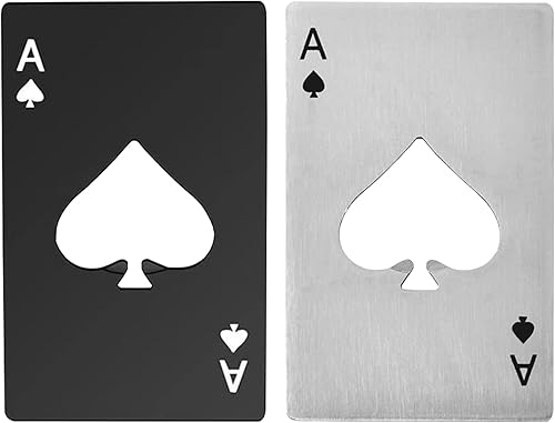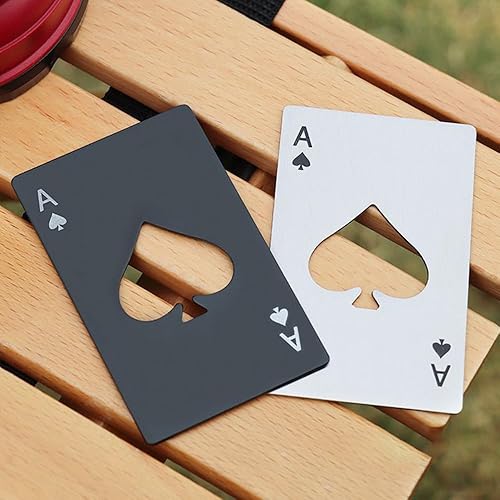 WOLMIK Lot de 2 décapsuleurs en acier inoxydable avec carte à jouer créative - Décapsuleur de bière personnalisé - Taille adaptée à votre portefeuille (noir et argent)