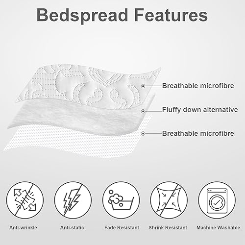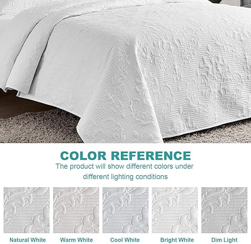 Hansleep Parure de lit king size damassée, couvre-lit léger, blanc, matelassage à ultrasons, sans couture