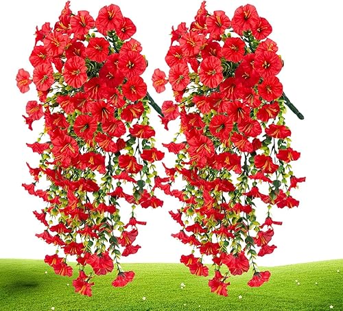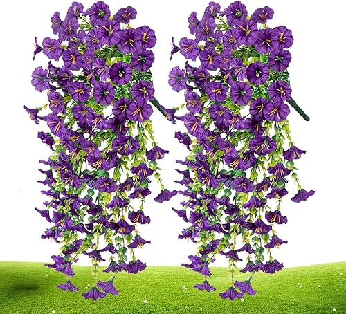 Eventerde Pétunias artificiels pour l'extérieur - 2 pétunias artificiels pour l'intérieur et l'extérieur - Résistant aux intempéries et aux UV - colorées pour fenêtre de Jardin - Pot de Fleurs