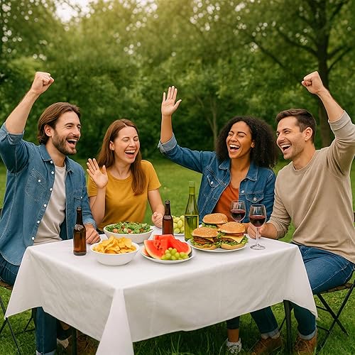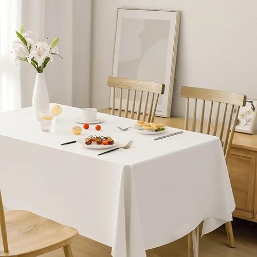 Druuzyl Lot de 10 Nappes Jetables 137 x 274 CM Nappe Imperméable, Nappe d'anniversaire en Plastique Jetable, Nappe Blanche pour Fêtes Mariages Pique-niques Anniversaires