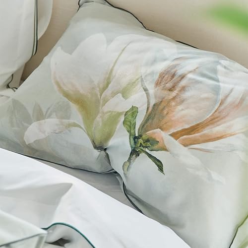 Taie d'oreiller imprimée en Satin de Coton, Yulan Magnolia, 65x65 cm, Designers Guild