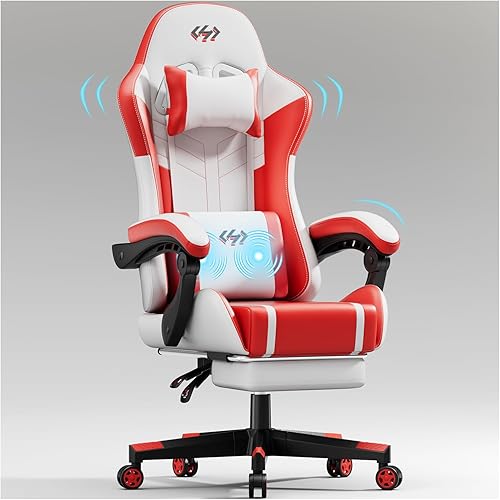 HLONONE Chaise de gaming avec fonction massage, fauteuil gamer ergonomique, fauteuil de jeu de course avec repose-pieds, appui-tête et coussin lombaire rembourré, chaise PC, charge maximale 150 kg,