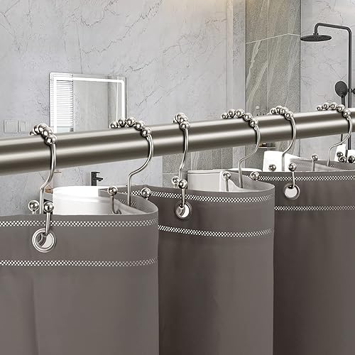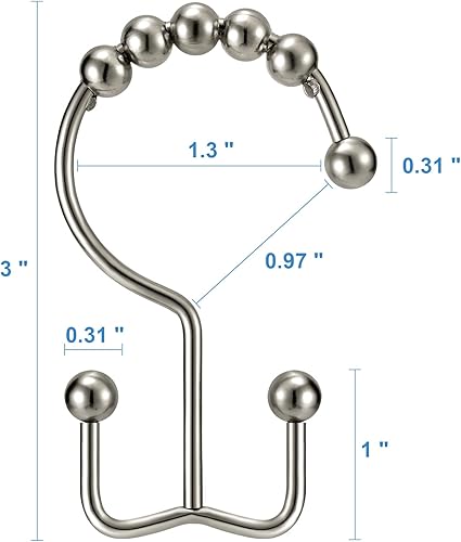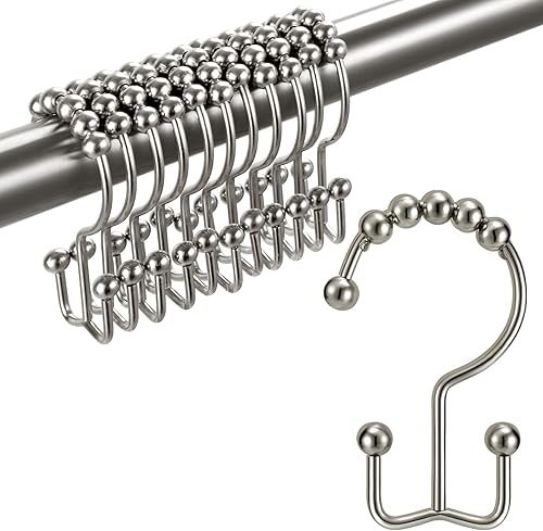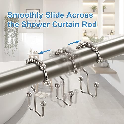 Tenovel NE Rouille pas 304 en acier inoxydable de douche Bagues Rideau de douche antirouille, crochets, Heavy Duty Roller double Glide Rideau de douche Crochets pour salle de bain douche Sacs, Nickel
