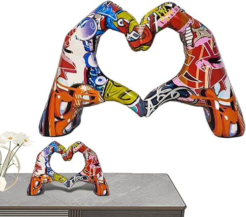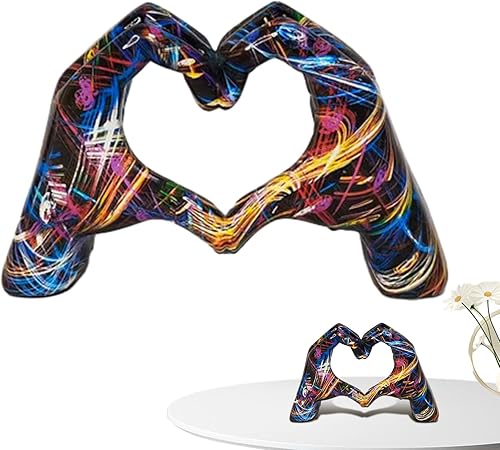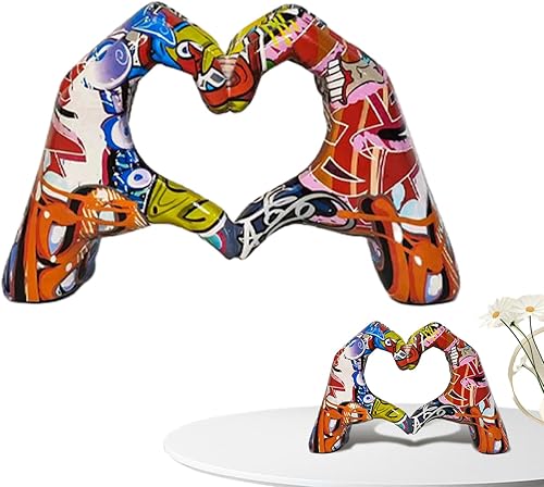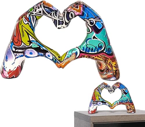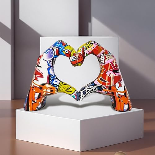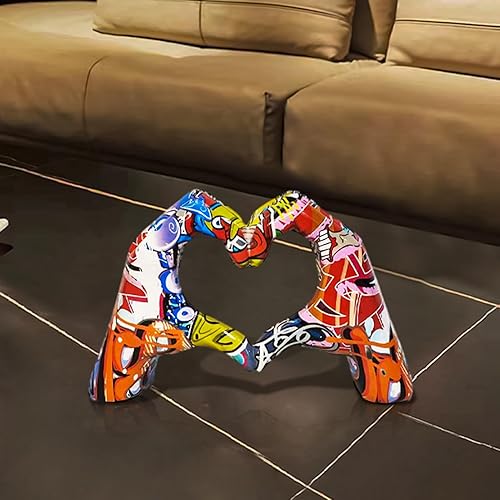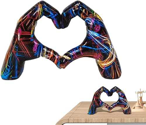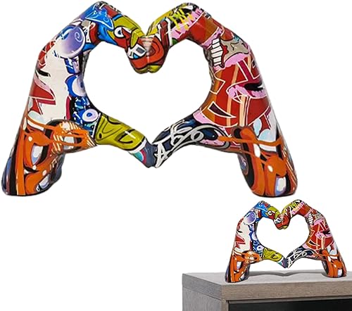 Kaxenig Statue De Doigt d'Amour, Geste De Coeur, Art Moderne, Sculpture De Coeur De Graffiti, Ornement en Forme De Cœur en Résine Colorée