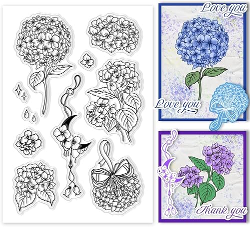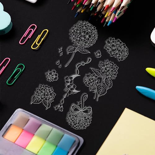 PH PandaHall Hortensias Tampons Clairs, Timbres en Silicone à Fleurs Tampons Transparents Tampons en Caoutchouc pour Albums Photos de Bricolage, Cartes de Vœux, Scrapbooking, Étiquettes-Cadeaux
