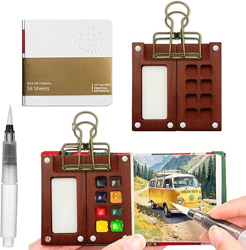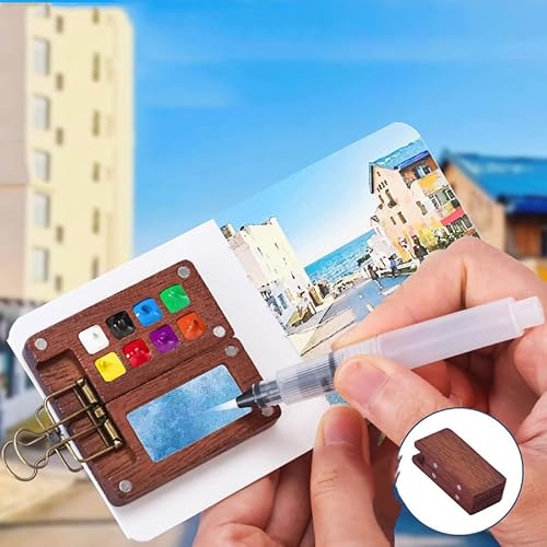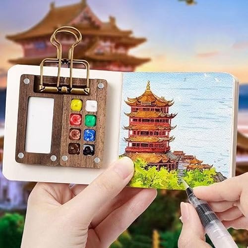 Palette de Carnet de Croquis pour Aquarelle,Portable Nano Palette Watercolor,Pocket Artist Watercolour Travel Set,Mini Palette,Palette en Bois pour Aquarelle,Gouache,Peinture Acrylique