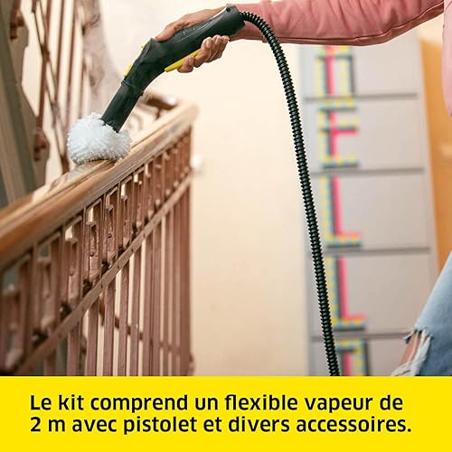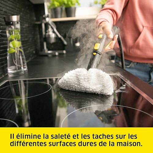 Kärcher Nettoyeur Vapeur SC 2 EasyFix, Pression Vapeur : 3,2 bar, Temps Préchauffage : 6,5 min, Puissance : 1 500 W, Surface : 75 m², Réservoir : 1 l, avec Set de Nettoyage de Sol EasyFix & Buses