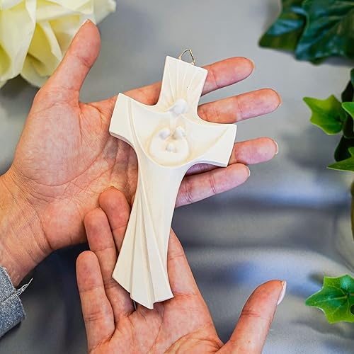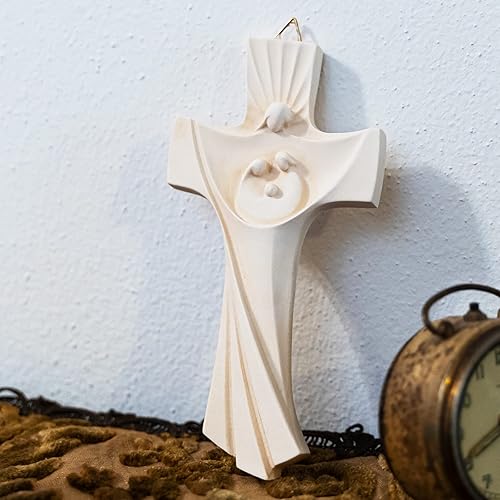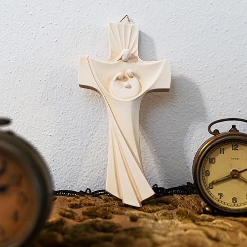 Holy Family Crucifix Holy Family en forme de croix 16 cm en résine et marbre en poudre murale/clé moderne | unique en son genre | produit fait main en Italie