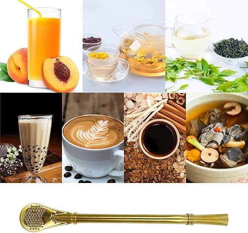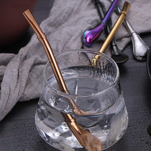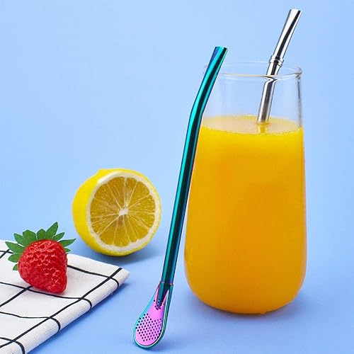 Yerba Mate Bombilla, 5 Pièces Cuillère à Paille en Acier Inoxydable, 5 brosses de nettoyage, Cuillère à Filtre réutilisable, Beau cadeau pour vos amis et votre famille(5 couleurs)