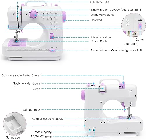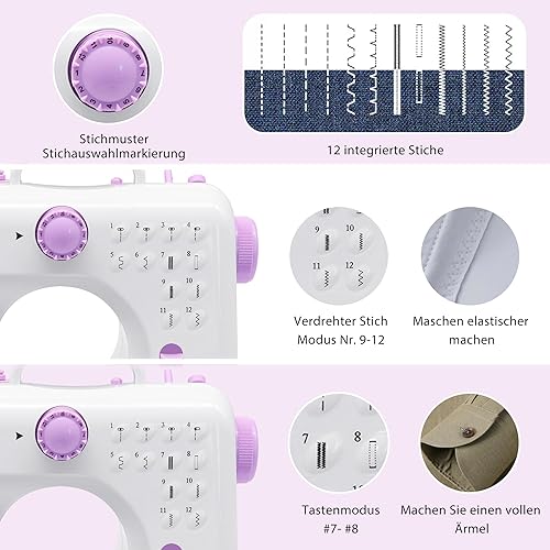 Machine à coudre, mini machine à coudre électrique portable, 12 points de couture avec lumière LED, kit d'accessoires de couture, idéal pour les vêtements, taies d'oreiller, feuilles