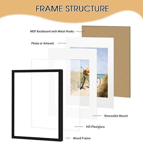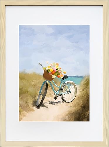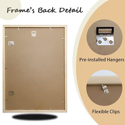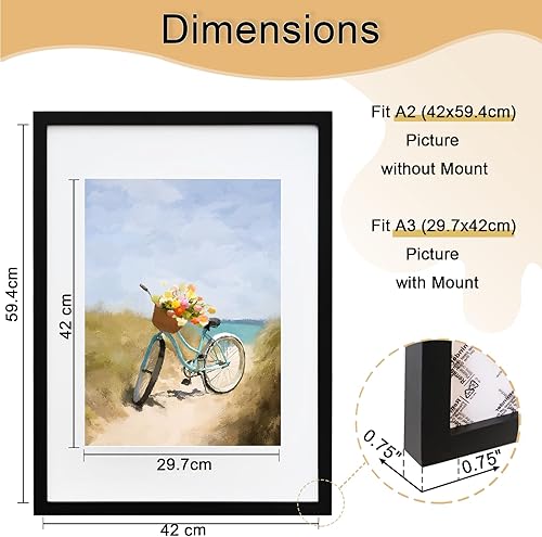 KIMREAL Cadre photo A2 en bois naturel avec passe-partout A3, cadre photo A2 en bois pour photo A3, à suspendre horizontalement et verticalement