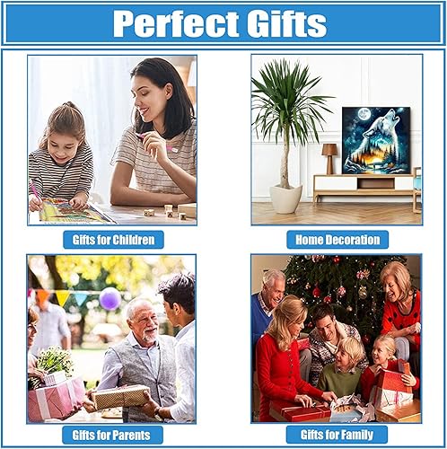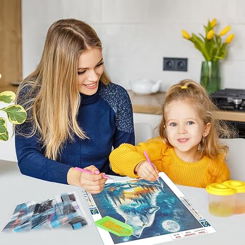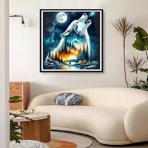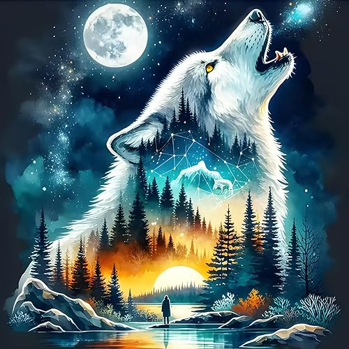 DPHERO 5D Loup Fantasy Diamond Painting Kits, DIY Forêt Art du Diamant Painting Kit Complet, Nuit de Lune Broderie Kits de Peinture sur Diamant Point de Croix Painting pour Adultes Débutants 30x30 cm