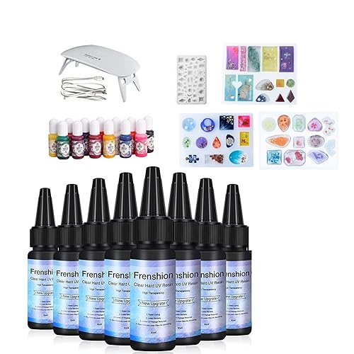 Lampe à résine UV incluse - 8 pièces Mise à niveau de 30 ml Cure rapide en une minute ! Résine activée par résine époxy cristalline de type dur + 4 moules + 15 pigments de couleur