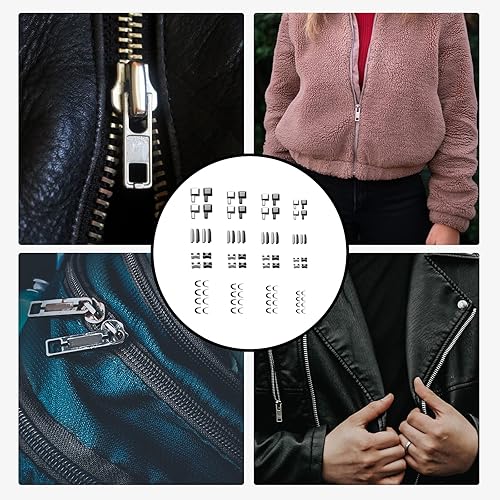 #3/5/8/10 Kit de Réparation Fermeture Éclair 16 Paires Curseur de Loquet de Fermeture à Glissière et Broche d'Insertion 16 Bouchon de Fermeture Éclair 16 Paires Butées Supérieures pour Bricolage