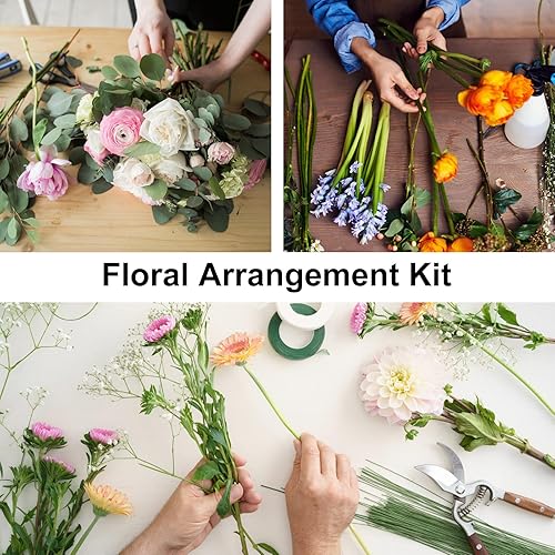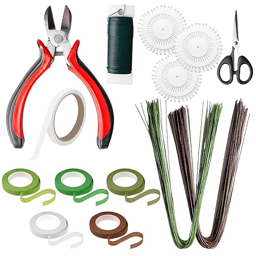 GBKDQQ Lot de 14 outils d'arrangement floral, y compris fil floral, rubans et enveloppes, ruban floral, fils de tige de fleurs, crêpe de fleuriste, coupe-fil et broches à tête sphérique