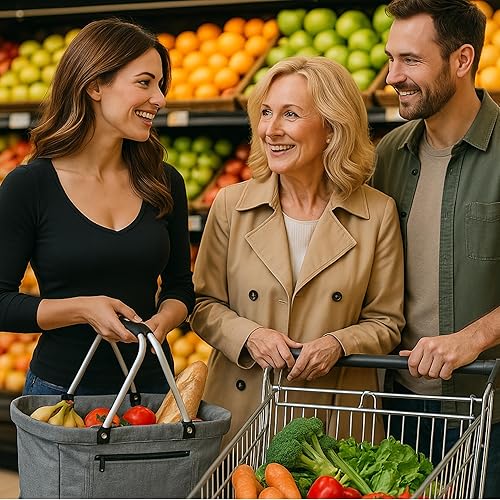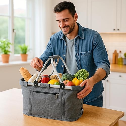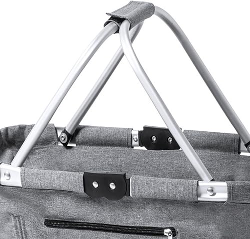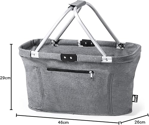 Panier à provisions pliable durable en PET recyclé avec cadre en aluminium, poignées pliantes et poche extérieure 46 x 26 x 29 cm