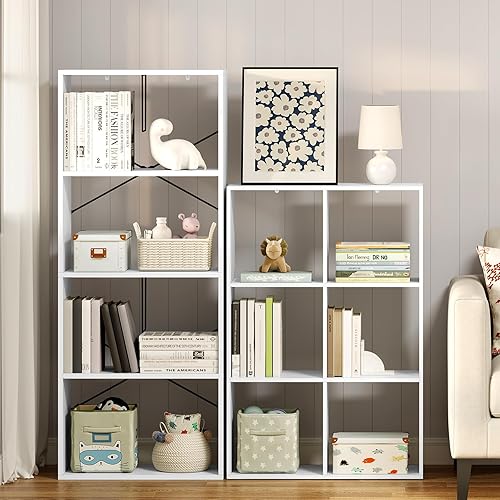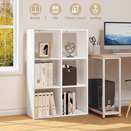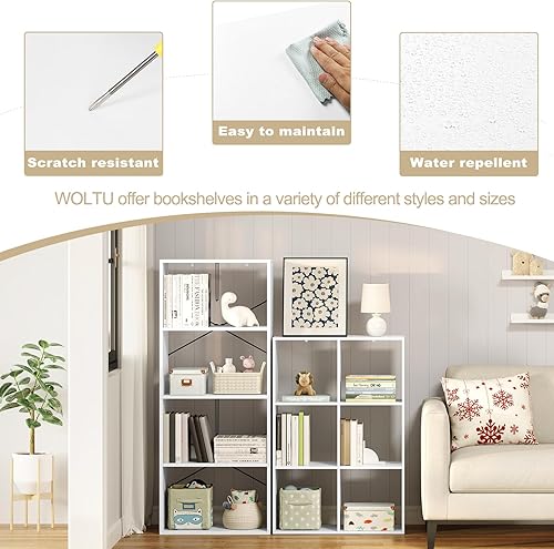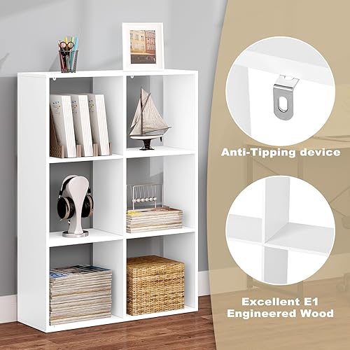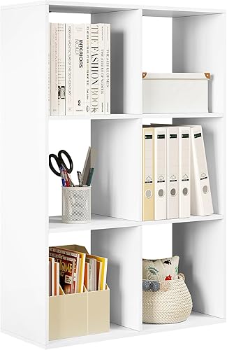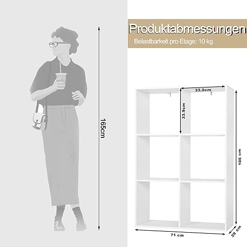 WOLTU Bibliothèque, Étagère Rangement, Meuble de Rangement, Bibliothèque à 3 Niveaux, Meuble Cube avec 6 Compartiments Ouverts, en Bois d’Ingénierie, Blanc, 71x29x106cm