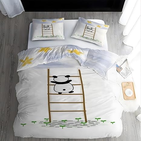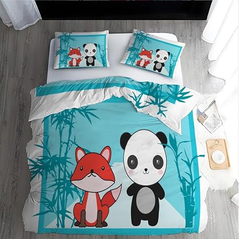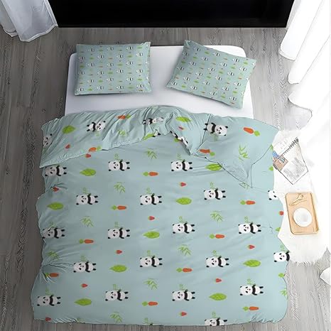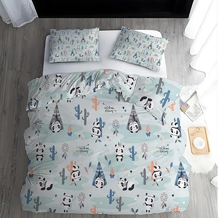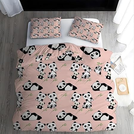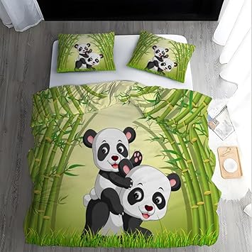 Boceoey Parure de Lit 90x190 Enfant Panda Noir Housse de Couette 1 Personne en Microfibre, Housse de Couette Enfant Imprimée avec Fermeture Éclair avec 2 Taie d'oreiller 65x65cm