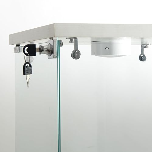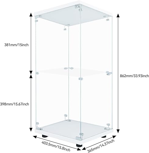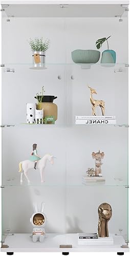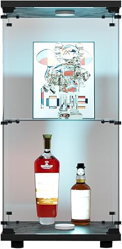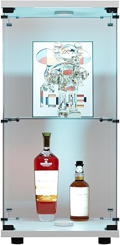 RWUDV Vitrine avec éclairage LED, vitrine moderne en verre avec 2 étagères, 1 porte, vitrine en verre, vitrine sur pied en verre trempé et bois pour salon