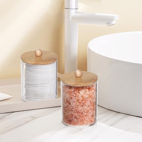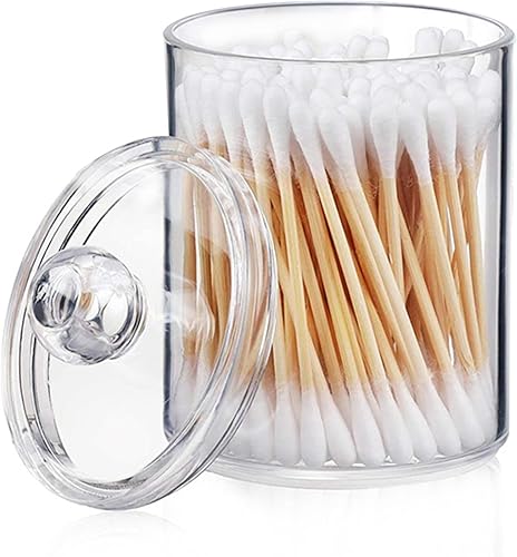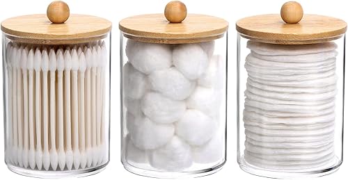 Tbestmax Qtip Lot de 3 pots d'apothicaire transparents pour cotons-tiges/balles/tampons de 283,5 g avec couvercles en bois