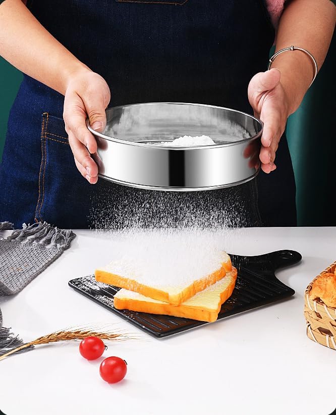Tamis à Farine en Acier Inoxydable, 2 pièces, Tamis à Farine Fin argenté en Acier Inoxydable 304, 2 Tailles de Tamis à Farine Professionnel 15/20 cm