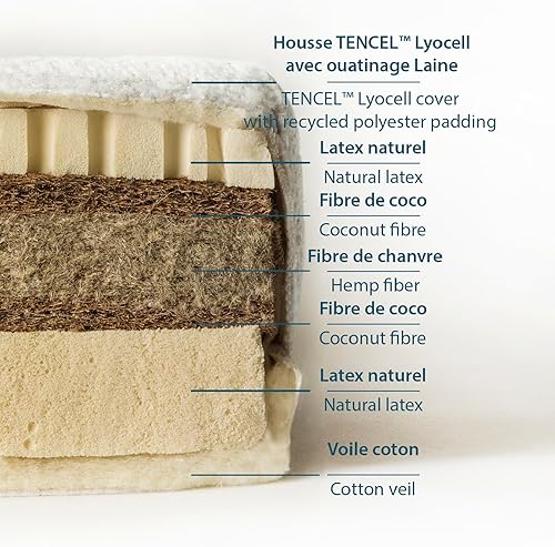 Kadolis - Matelas Enfant CHANVRENATURA 90x190x17 cm - Matelas Lit 1 Personne d'Exception - Coeur 100% Naturel - Matelas Latex avec Housse Amovible - Certifié OEKOTEX