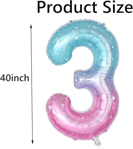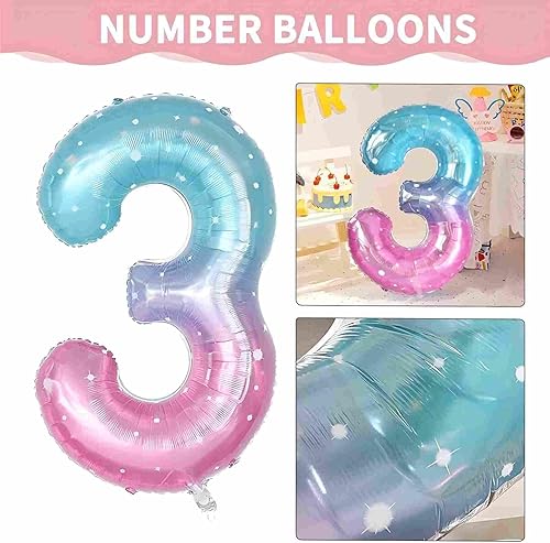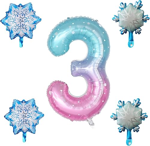 Yuannee Ballon D'anniversaire Chiffres 3 Ans,5 PCS Ballon Chiffre Numéro 3 Decoration Anniversaire Ballons de Flocon de Neige Ballons Arc en Ciel Géant pour Baby Shower Anniversaire Party Décoration