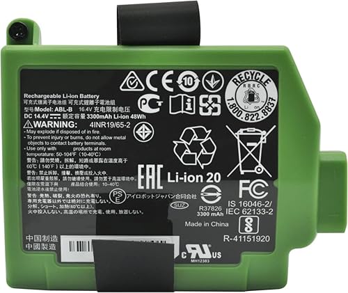 ASKC ABL-B Replacement Batterie pour iRobot Roomba S9 9150 S9+ S9550 9550 + S9 Plus S955020 S955880 Robot Vacuum Series 4INR19/65-2 14.4V 3300mAh 48Wh