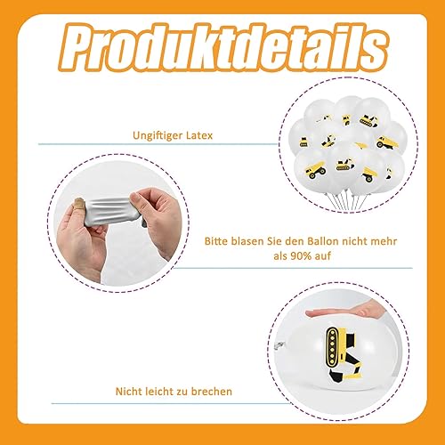 Lot de 16 ballons décoratifs en latex avec pelleteuse, chantier de construction, décoration pour anniversaire d'enfant, véhicules, pelleteuse, camion, en latex, pour voiture, décoration de fête à