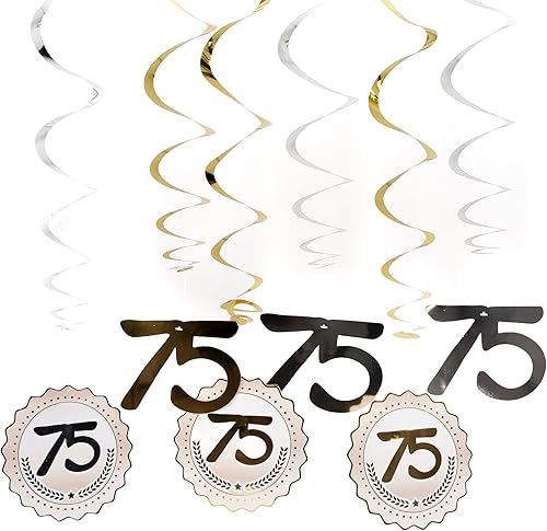 Decoration anniversaire 75 ans spirales argent/or - Décoration originale pour un 75 ans anniversaire homme et femme - Tiwoca