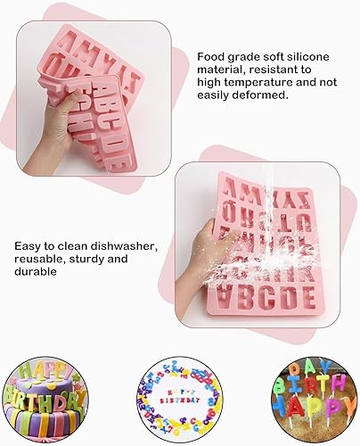 AORHOFJ Moules à Lettres en Silicone, Moule en 3D Lettres 0-9, Moule à Gâteau en Silicone, Anti Adhésifs Alphabet Chocolat Moule, Moule Lettres Cake pour Biscuit, Bonbon, Cadeaux d'anniversaire DIY