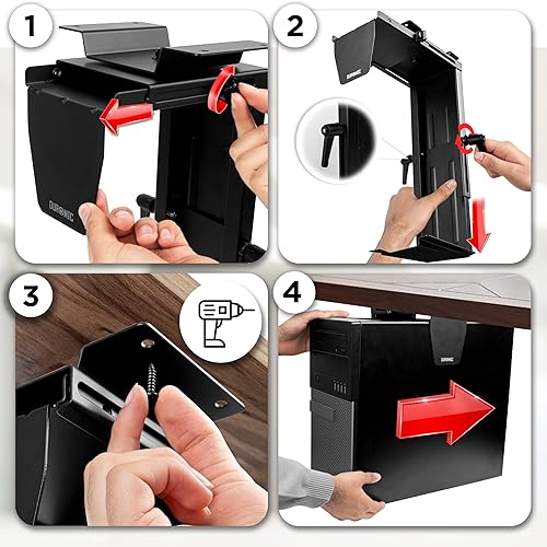 Duronic DMHD1 Support pour Tour d'Ordinateur | Support de Rangement pivotant à 360° pour Unité Centrale | Hauteur Ajustable de 28 à 48.5 cm et Profondeur Réglable | Noir