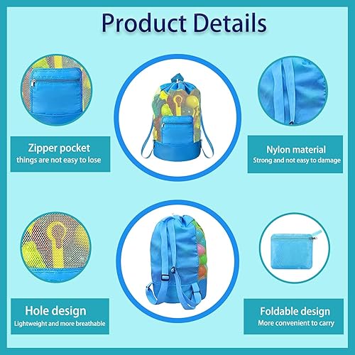 Sac de Jouets Plage en Filet pour Enfants - Rangement Pliable et Réutilisable - Pour Vacances en Famille, Voyage, Natation