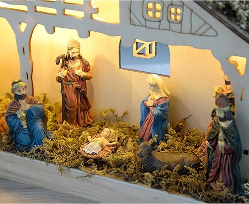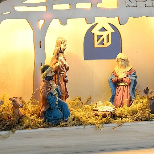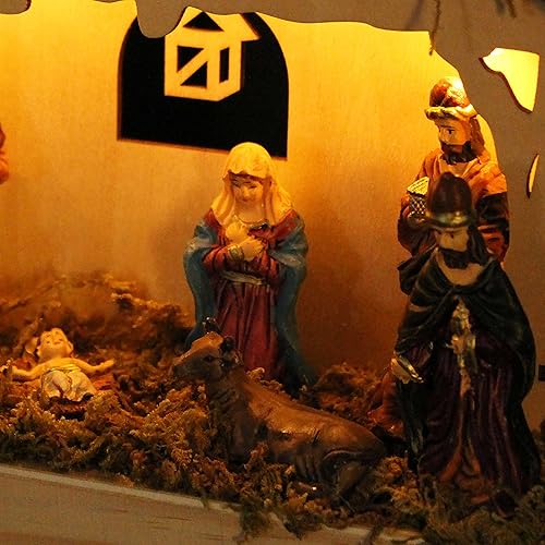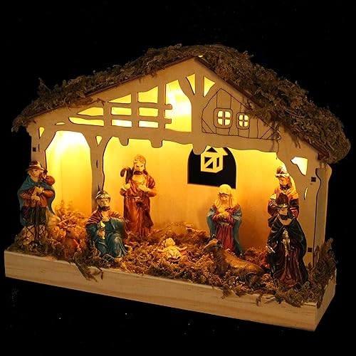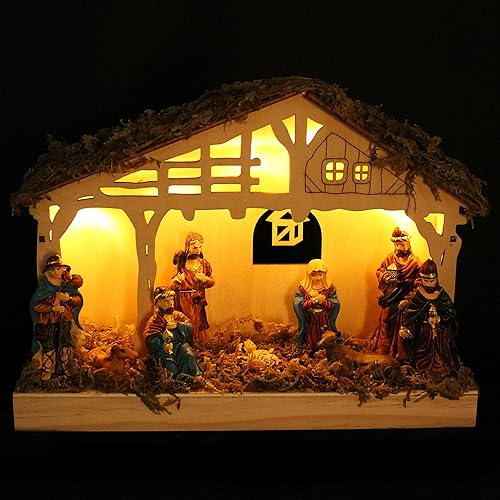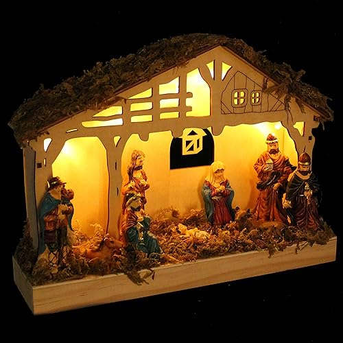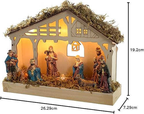 WeRChristmas Crèche de Noël en Bois illuminée avec 5 LED Blanc 26 cm