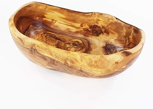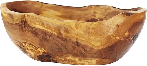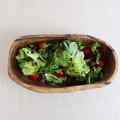 mitienda mit Liebe gemacht Saladier en Bois d'olivier Ovale 27cm, Coupe à Fruits, Corbeille à Pain, Grand Bol en Bois
