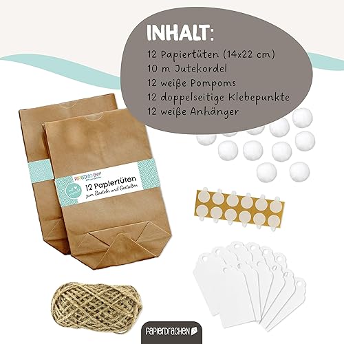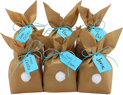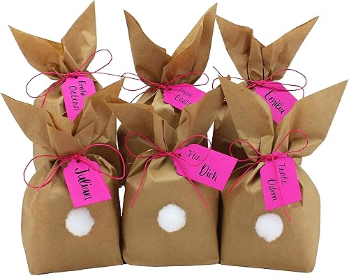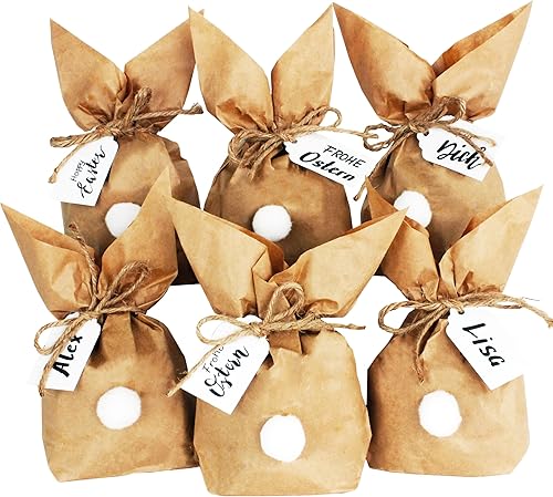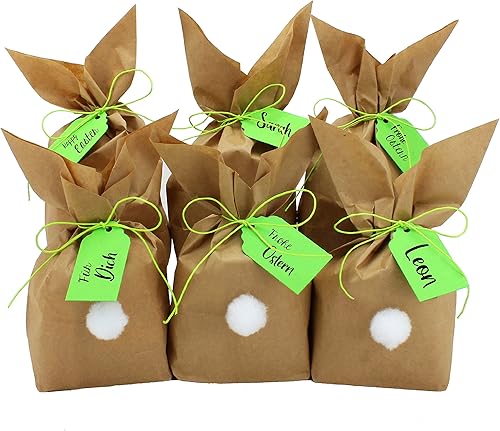 12 lapin de Pâques à bricoler et remplissage - cadeau créatif pour Pâques avec 12 sacs en papier, cordon et pompons