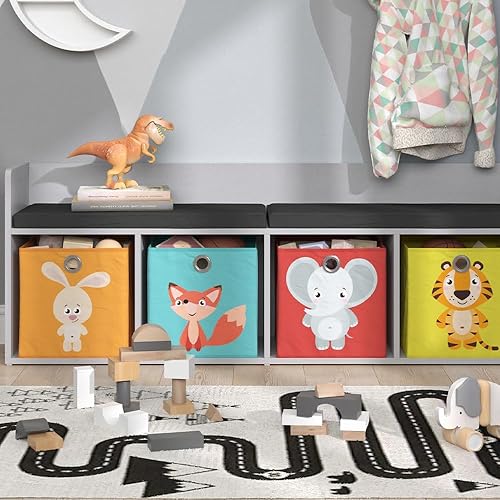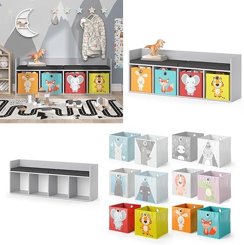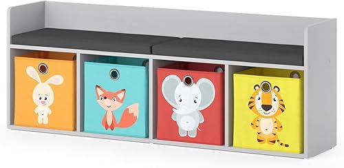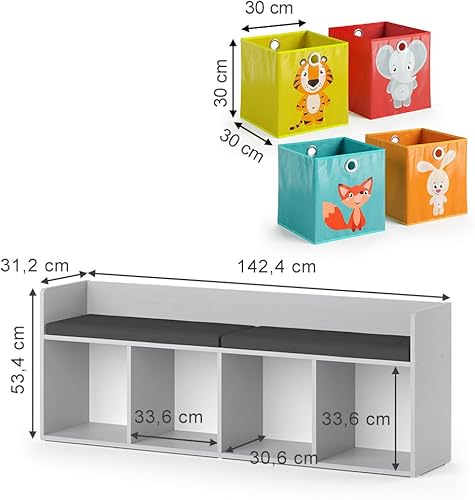 Vicco Étagère pour Enfants Luigi, Blanc, 142.4x53.4cm 4 Compartiments, avec boîtes Pliantes Multicolores