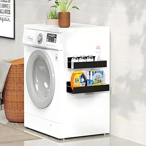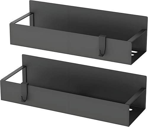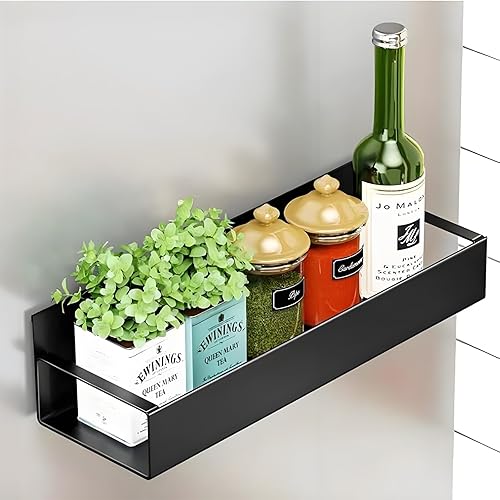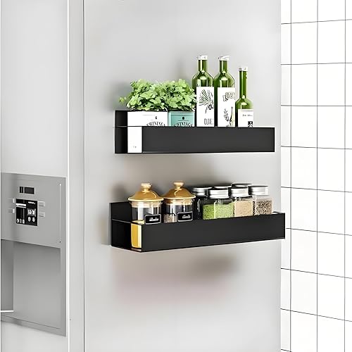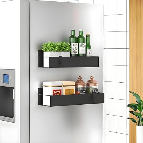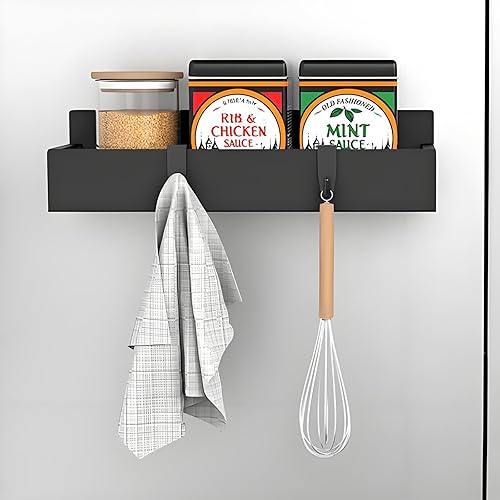 KedioPio Etagere Magnetique Frigo, 2 Pièces Porte Epice Aimantée Etagere Aimantée Frigo, Étagère À Épices Magnétique en Métal avec 4 Crochets pour Rangement et Organisation de la Cuisine, Noir
