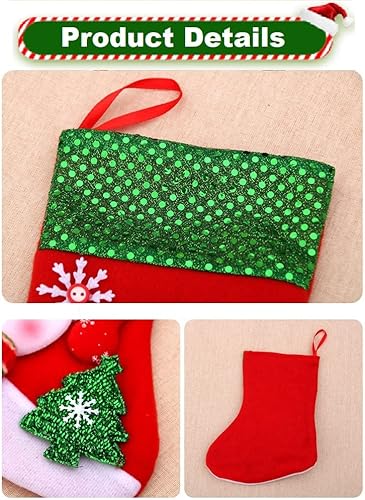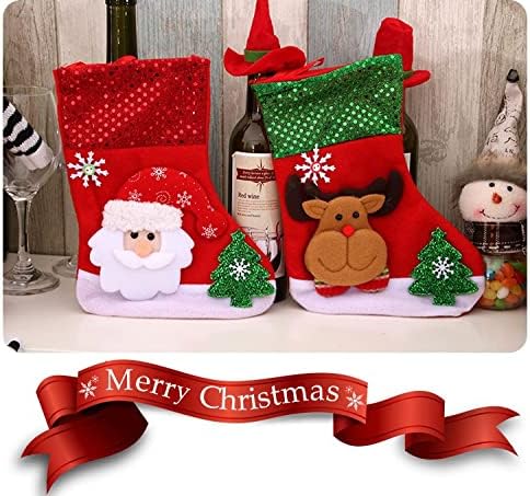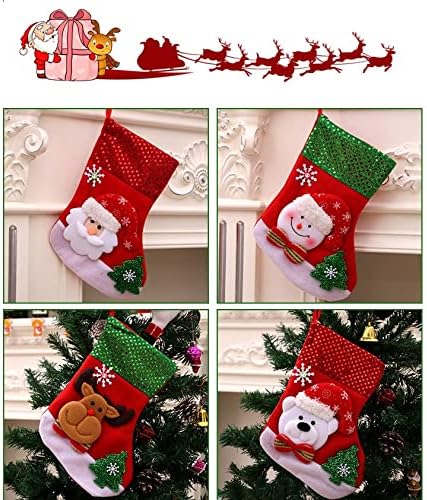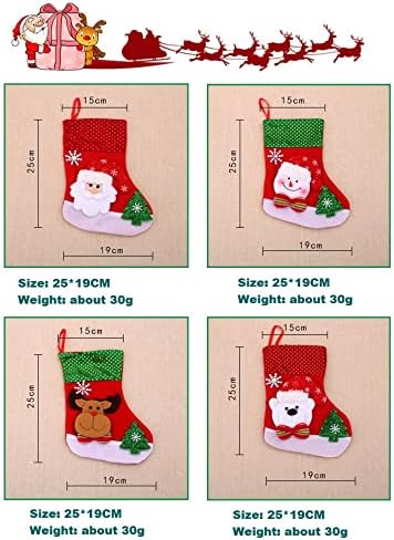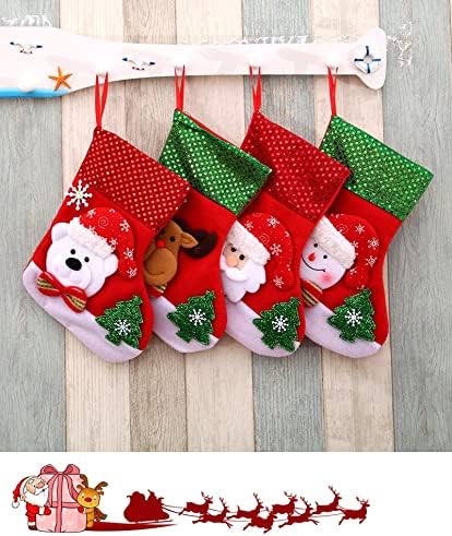 4 pièces Chaussette de Noël, Design Père Noël, Rennes et Bonhommes de Neige, Chaussettes de Cheminée, Xmas Sac Cadeau pour Décoration Noel Cheminée Sapin Sac de Bonbons Décorations d'arbre de Noe